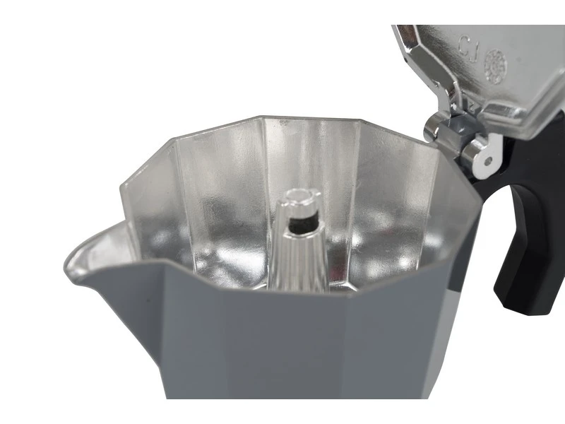 Een stevige aluminium koffiezetter. Deze eigentijdse espresso maker is goed voor 3 kopjes koffie. Met deze percolator kan er binnen enkele minuten een kop koffie worden gezet. Je vult het onderstel van deze espresso maker met water en daarboven in het houdertje komt de koffiepoeder. Wanneer het water aan de kook raakt, ontstaat er een heerlijke kop koffie.