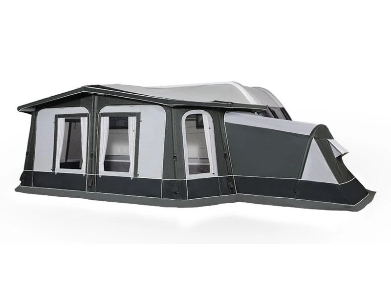 Een majestueus gevoel door veel ruimte, licht en eersteklas materialen. De eerste volledige Air voortent met een diepte van 280 cm. Speciaal ontwikkeld om een luxe en royale ruimte met veel lichtinval voor je caravan te creëren. De Luxor Air 280 is volledig opblaasbaar en heeft een modern design met dubbele slikranden.