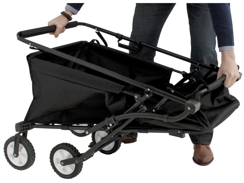 Eurotrail bagagewagen opvouwbaar. Een praktische bagage wagen voor transport van alle campingspullen of handig voor het strand, sport of rondom huis. De caddy is door de comfortabele trek/ duwstang eenvoudig te verplaatsen. Het is in z’n geheel inklapbaar en de wieltjes kunnen er eenvoudig af. Zo wordt de bagagewagen een zeer klein pakketje wat overal gemakkelijk weggestopt kan worden.