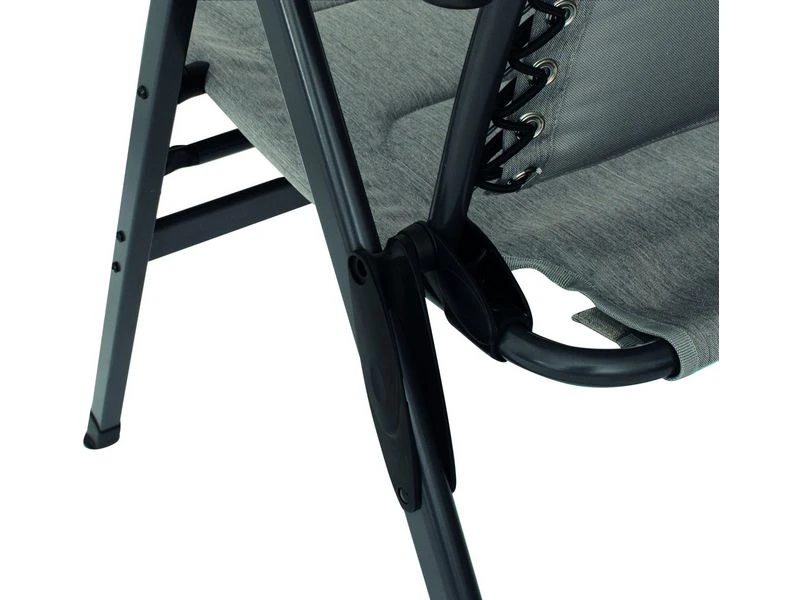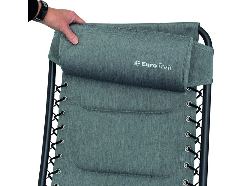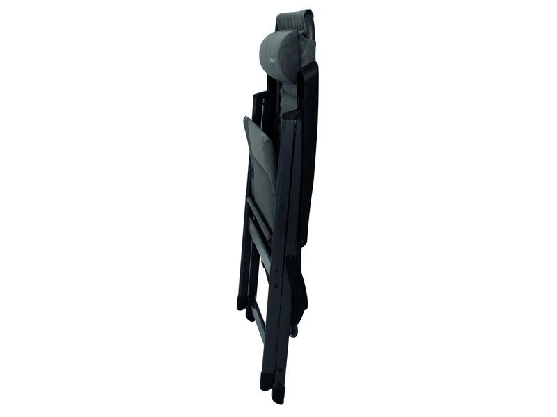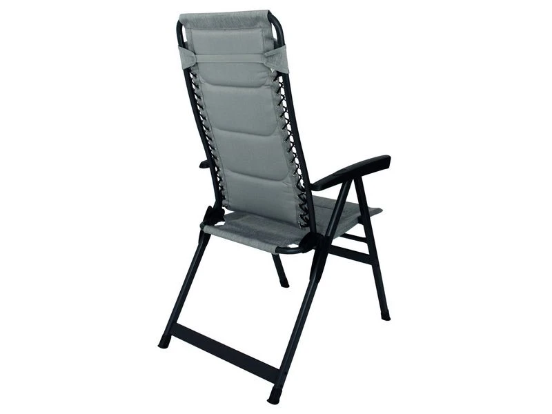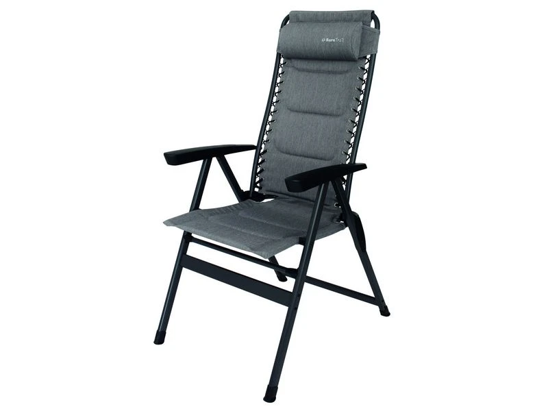 Nieuwe campingstoel van Eurotrail. De Craco is vervaardigd van een stevig aluminium D frame en de gepolsterde zitting is gemaakt van het nieuwe Nova Cantonic 600 materiaal. Het (7x) verstelbare rugpaneel wordt met 2 elastieken bevestigt aan het frame. Het geheel biedt veel zitcomfort en heeft een luxe uitstraling. De meegeleverde hoofdsteun is in hoogte verstelbaar en kan op elke gewenste positie gezet worden en kan ook als lendensteun worden gebruikt. Optioneel is er een bijpassende voetenbank leverbaar.