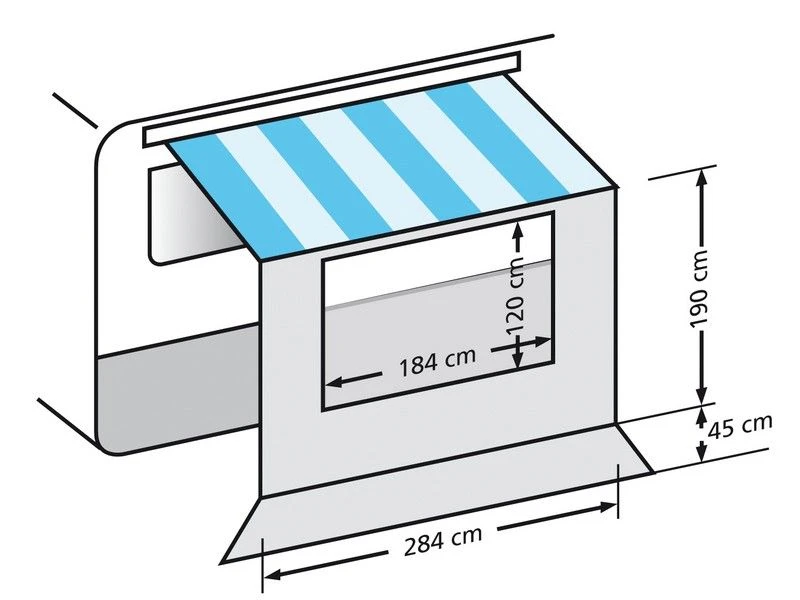 Eenvoudige bevestiging dmv de aangestikte pees in het profiel aan de onderzijde van de cassette luifel te schuiven. Kleur grijs. Incl. afspanladders, haringen en opbergtas